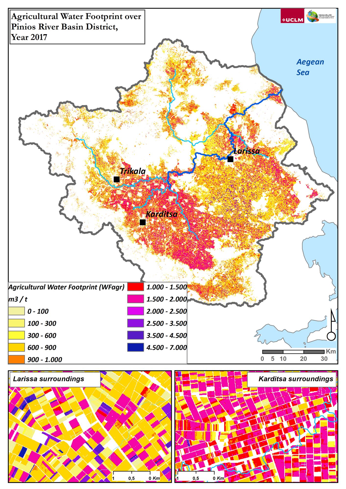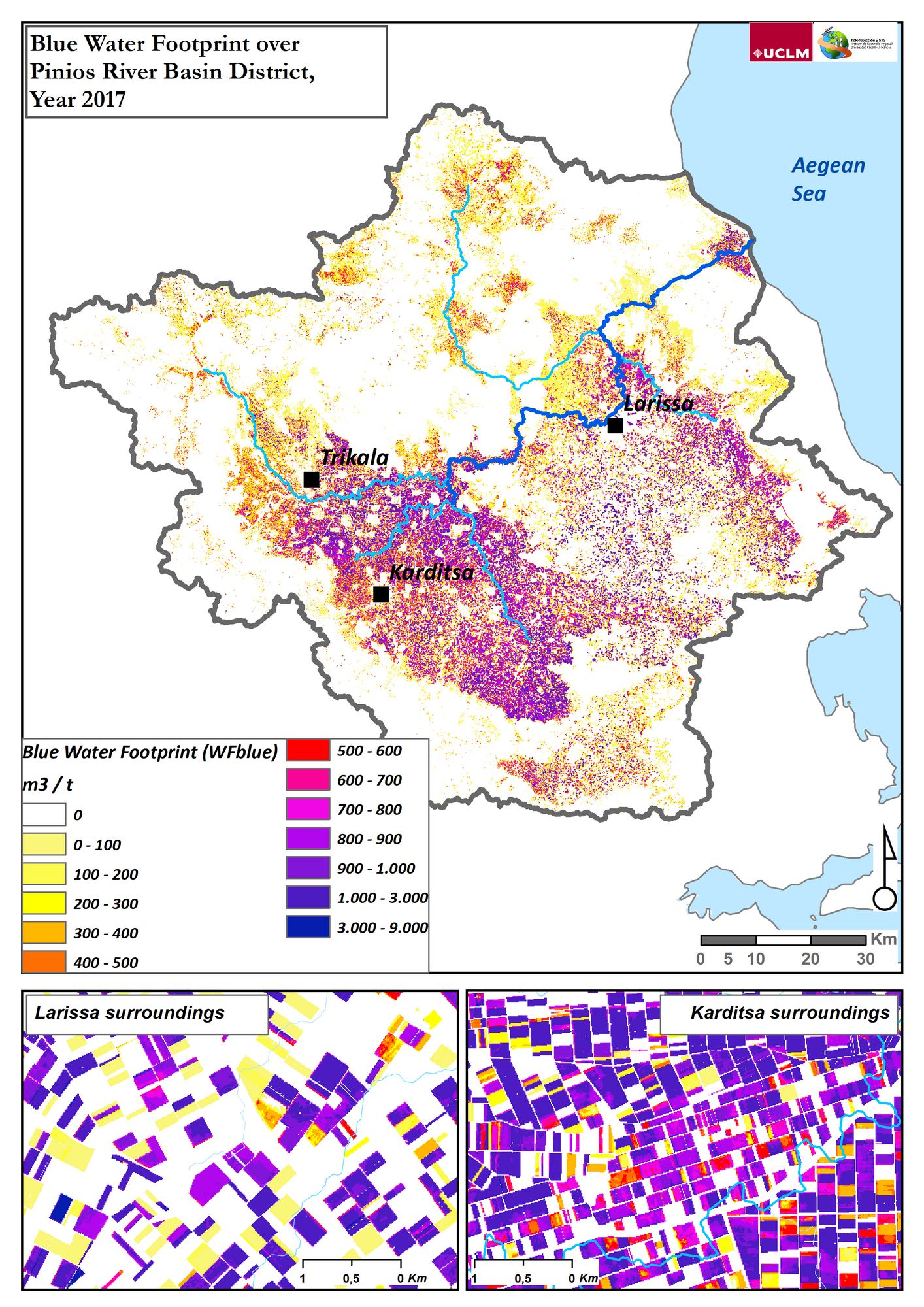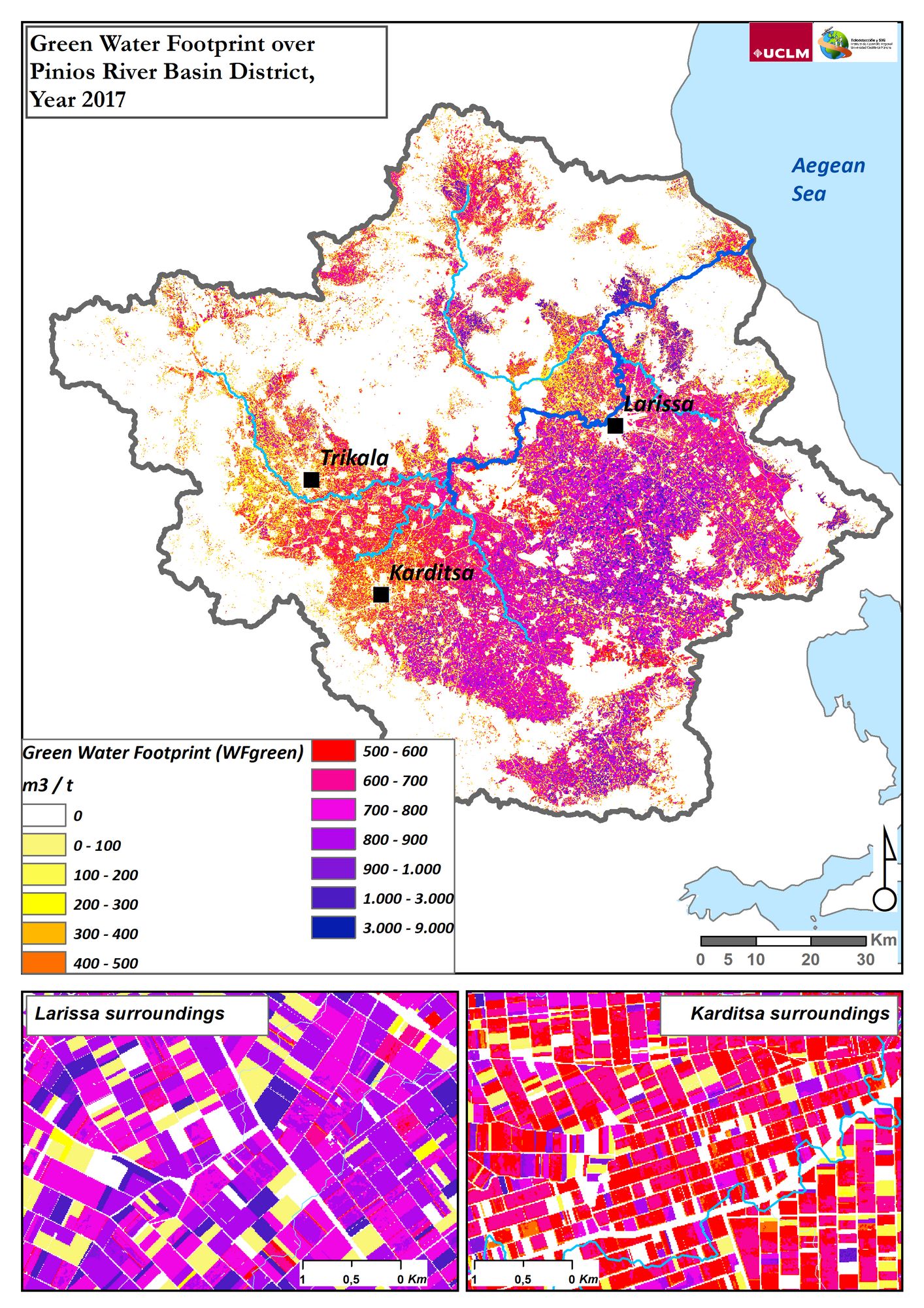 Για παράδειγμα, ένας διαχειριστής νερού λεκάνης απορροής ποταμού μπορεί να συντάξει μια αναφορά που καλύπτει κάθε ένωση χρηστών αρδευτικού νερού που περικλείεται στην περιοχή λεκάνης απορροής ποταμού. Ως εκ τούτου, καθώς αυτές οι πληροφορίες μπορούν να σχετίζονται με τις καλλιέργειες που έχουν αναπτυχθεί, η γνώση του διαχειριστή νερού για την επικράτειά του ενισχύεται επειδή οι πληροφορίες σχετικά με την ποσότητα του πράσινου ή μπλε υδάτινου πόρου που χρησιμοποιείται ή το πράσινο ή το μπλε και πράσινο αποτύπωμα νερού που εκτιμάται για μια συγκεκριμένη καλλιέργεια σε μια συγκεκριμένη ένωση χρηστών νερού περιλαμβάνεται σε αυτούς τους θεματικούς χάρτες ή τις στατιστικές εκθέσεις.